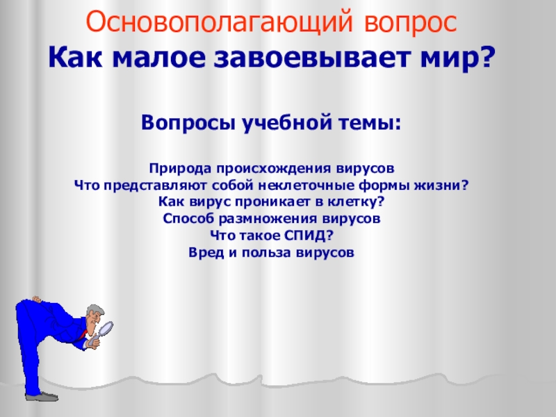 1)изучить происхождения вирусов, особенности их строения, жизнедеятельности;
