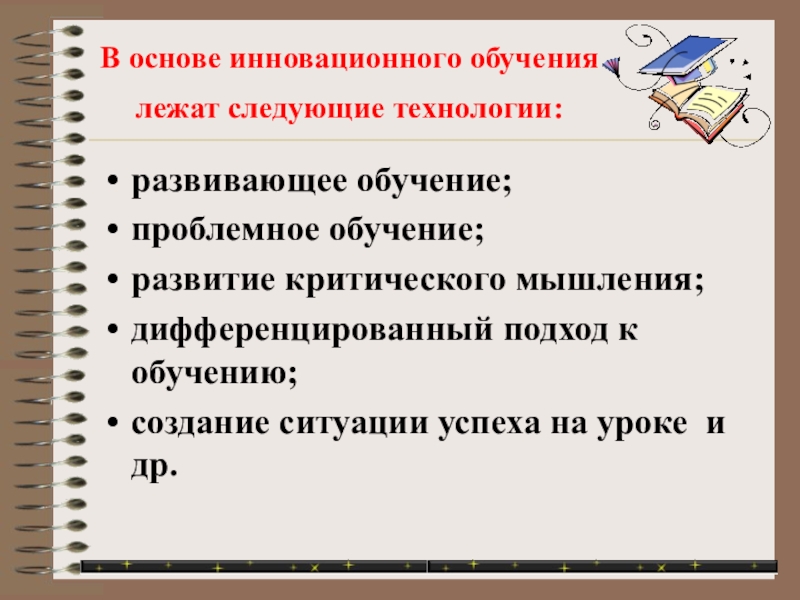 Слайд 13В основе инновационного обучения лежат следующие технологии: