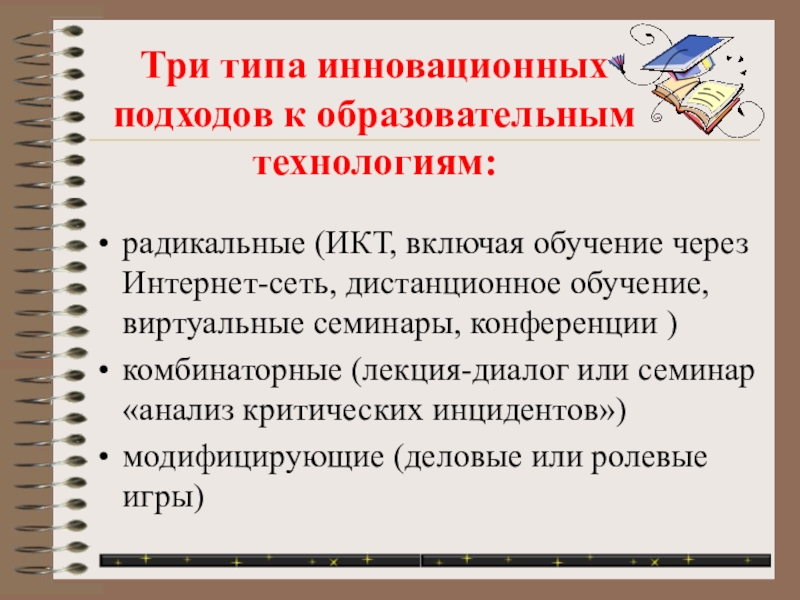 Слайд 7Три типа инновационных подходов к образовательным технологиям: