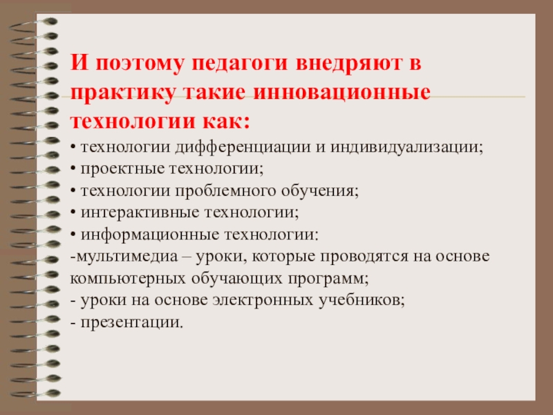 Слайд 9И поэтому педагоги внедряют в практику такие инновационные технологии как: