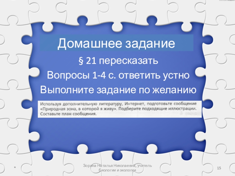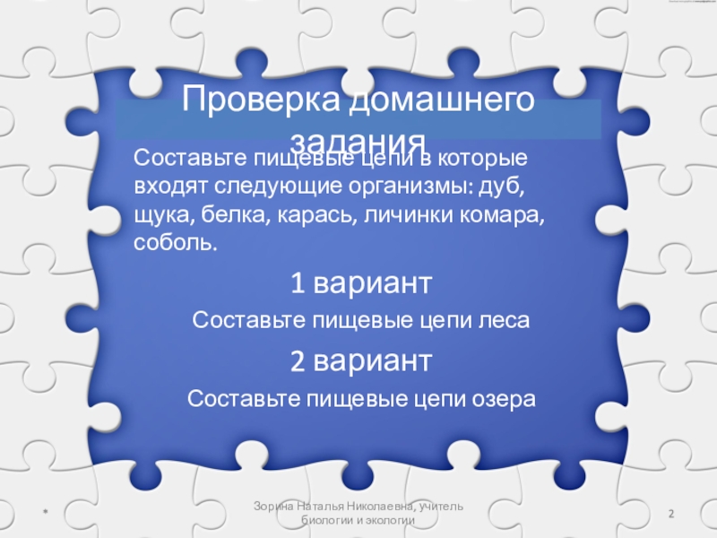 Зорина Наталья Николаевна, учитель биологии и экологии
