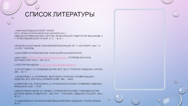 10.Шамшева В.О. «Клиническая вакцинология» Издание: ГЭОТАР-Медиа 2016 г.