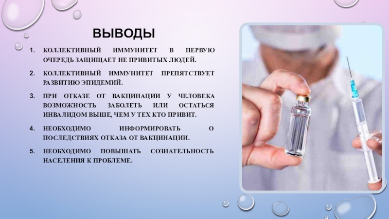 При отказе от вакцинации у человека возможность заболеть или остаться инвалидом выше, чем у тех кто привит.