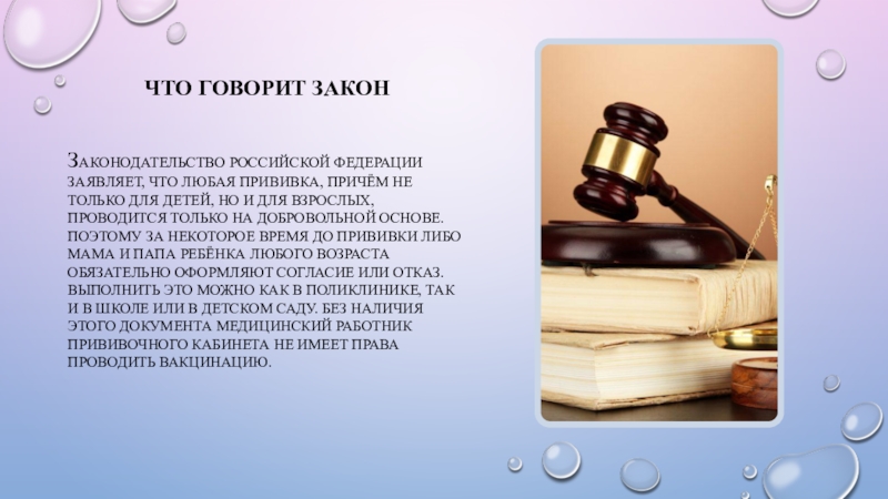 Законодательство Российской Федерации заявляет, что любая прививка, причём не