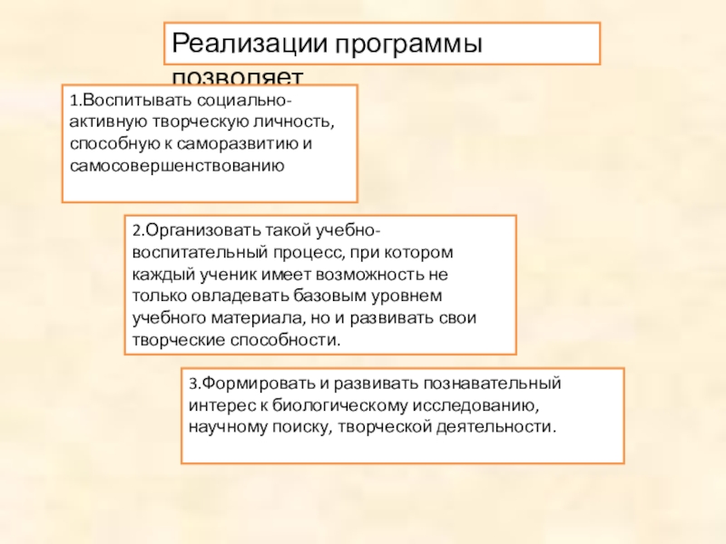 3.Формировать и развивать познавательный интерес к биологическому исследованию, научному поиску, творческой деятельности.
