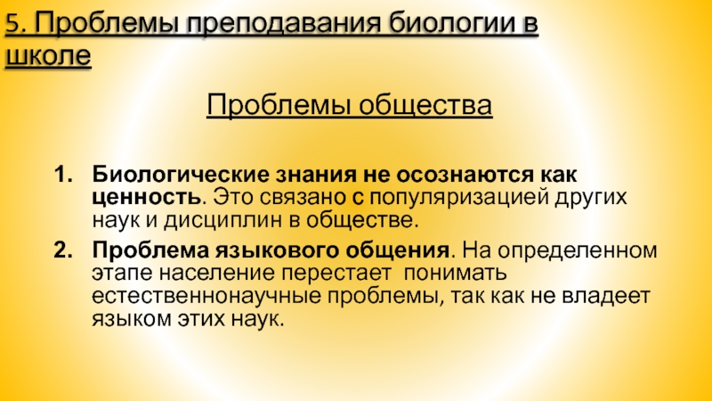 Проблема языкового общения. На определенном этапе население перестает понимать естественнонаучные проблемы, так как не владеет языком этих наук.