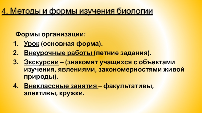 Экскурсии – (знакомят учащихся с объектами изучения, явлениями, закономерностями живой природы).