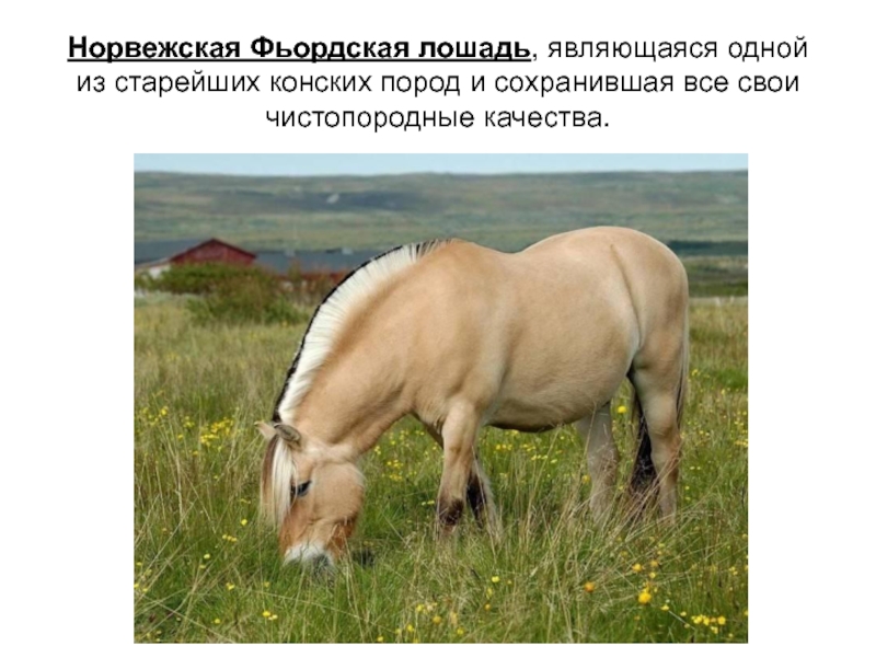 Слайд 10Норвежская Фьордская лошадь, являющаяся одной из старейших конских пород и сохранившая