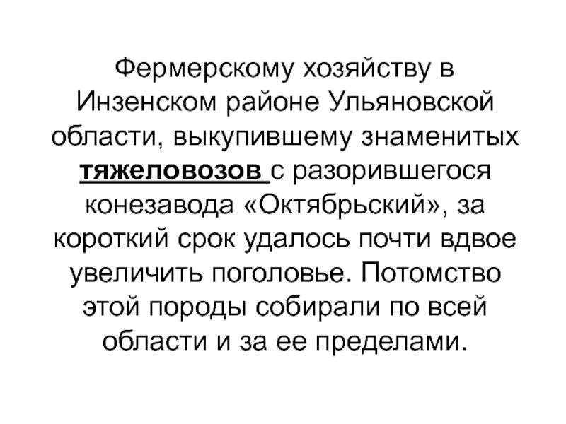 Слайд 19 Фермерскому хозяйству в Инзенском районе Ульяновской области, выкупившему