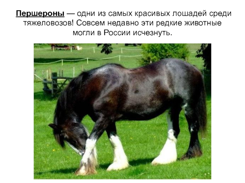 Слайд 20Першероны — одни из самых красивых лошадей среди тяжеловозов! Совсем недавно