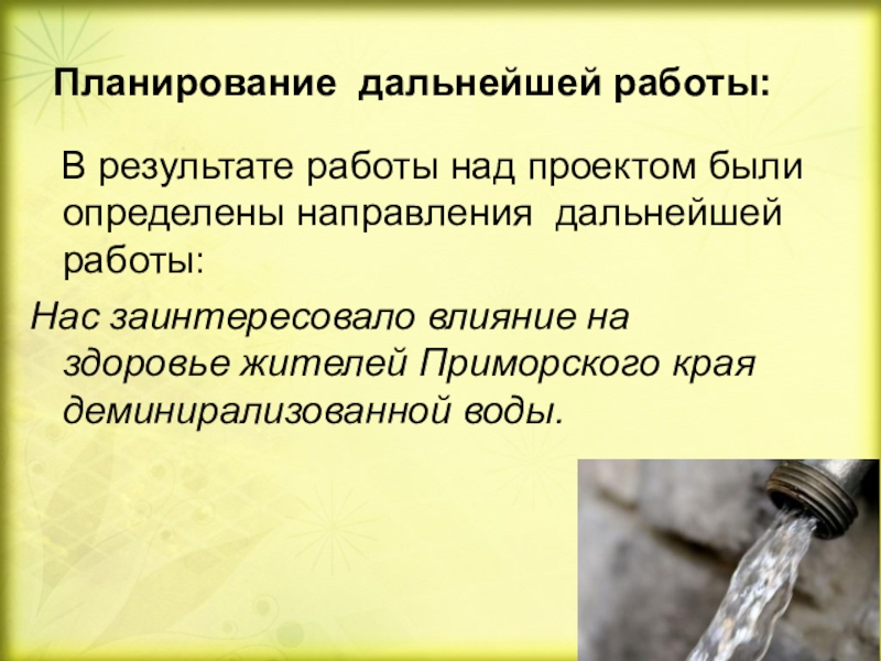 Нас заинтересовало влияние на здоровье жителей Приморского края деминирализованной воды.