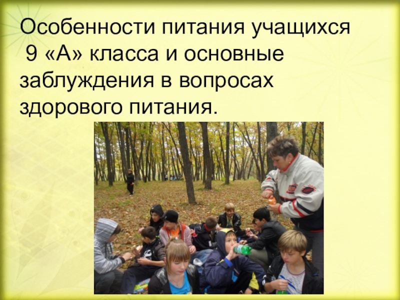 Изучить и проанализировать особенности питания учащихся 9 «А» класса;
