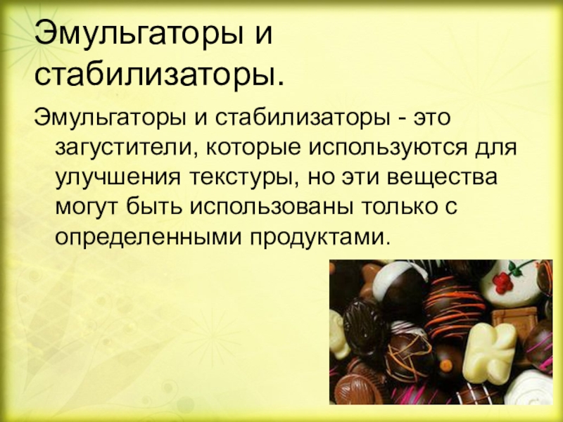 Эмульгаторы и стабилизаторы - это загустители, которые используются для
