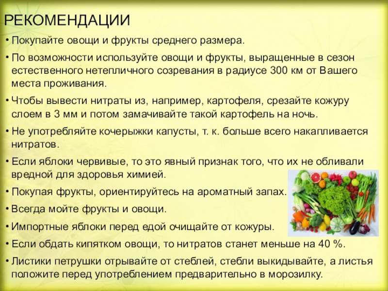 Составлен список рекомендаций по правильному выбору овощей и фруктов