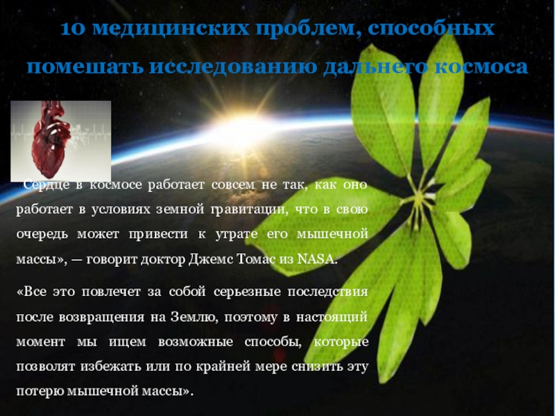 в космосе. Чем дольше длится космическая миссия, тем вероятнее шанс подобных печальных последствий.