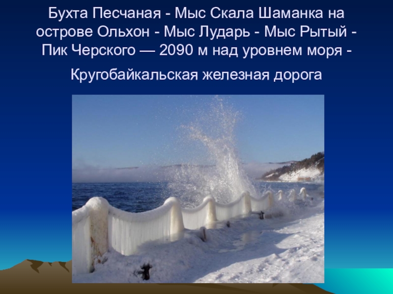 Слайд 13Бухта Песчаная - Мыс Скала Шаманка на острове Ольхон - Мыс