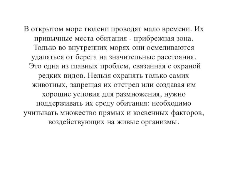 Слайд 9В открытом море тюлени проводят мало времени. Их привычные места обитания