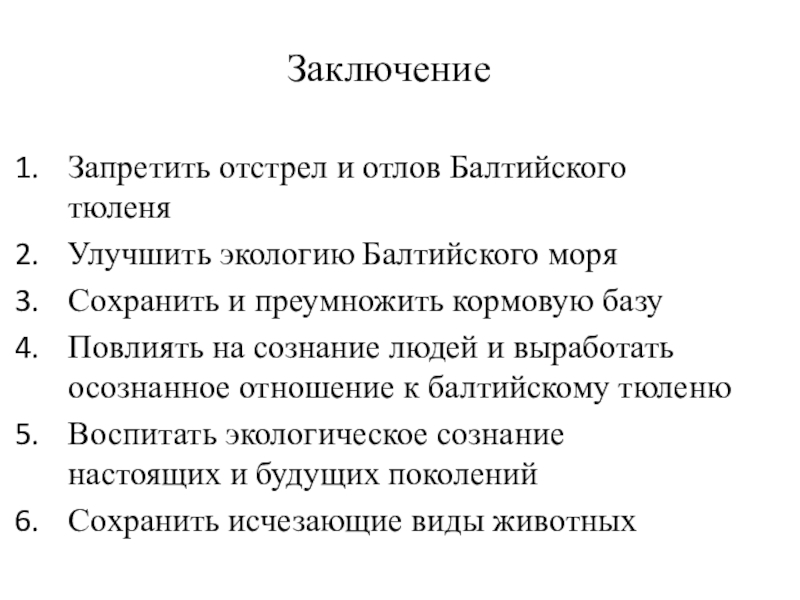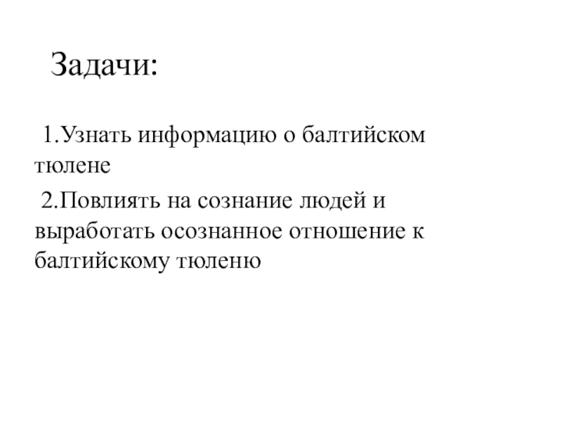 2.Повлиять на сознание людей и выработать осознанное отношение к балтийскому тюленю