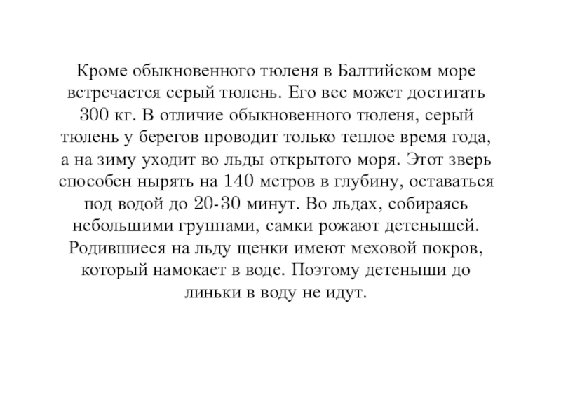 Слайд 13Кроме обыкновенного тюленя в Балтийском море встречается серый тюлень. Его вес