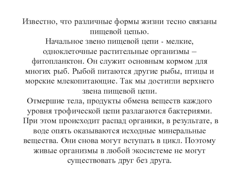 Слайд 10Известно, что различные формы жизни тесно связаны пищевой цепью.
