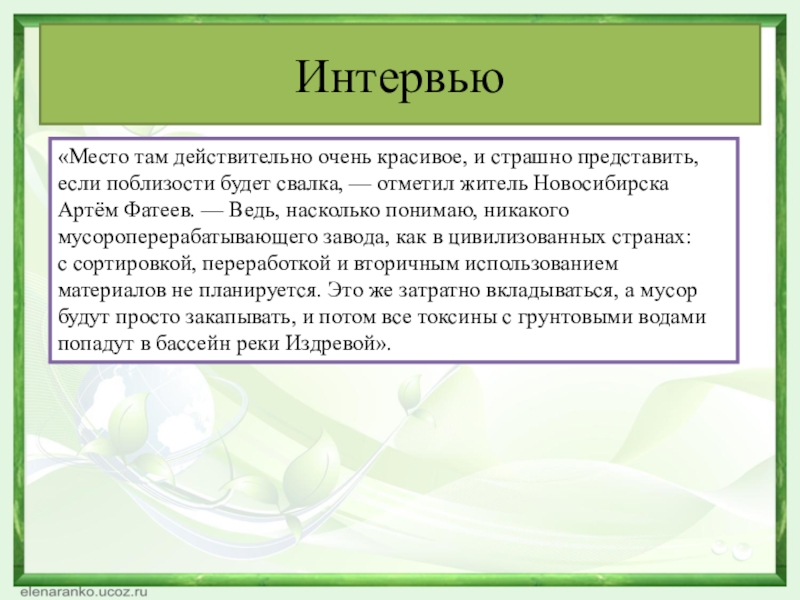 токсичные отходы попадут в бассейн реки Издревая. Лес погибнет, река погибнет, а вместе с ними — краснокнижные звери и птицы.