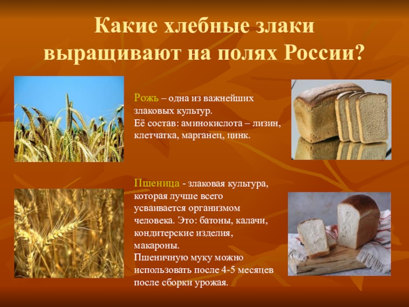 Пшеница - злаковая культура, которая лучше всего усваивается организмом человека. Это: батоны, калачи, кондитерские изделия, макароны.