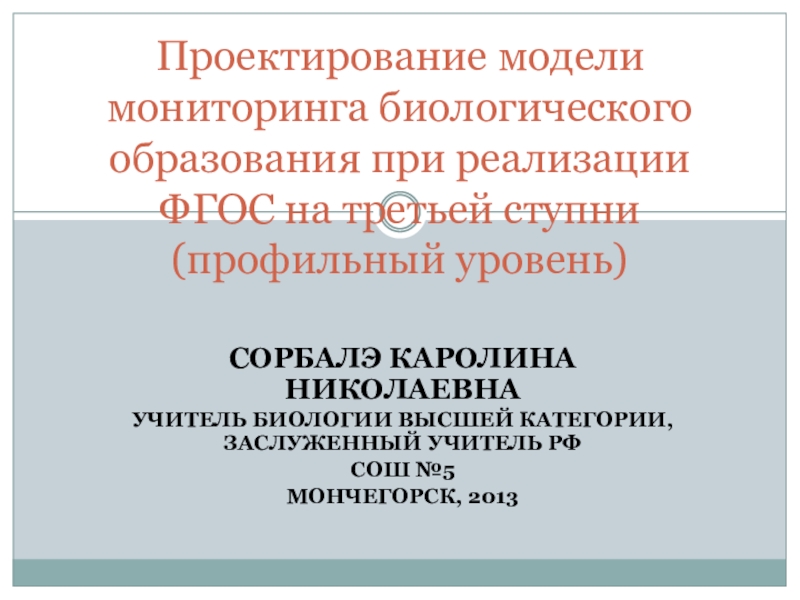 Проектирование модели мониторинга биологического образования при реализации ФГОС на третьей ступни (профильный уровень)