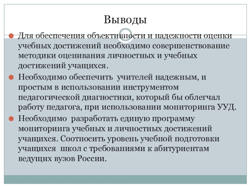 Для обеспечения объективности и надежности оценки учебных достижений необходимо совершенствование методики