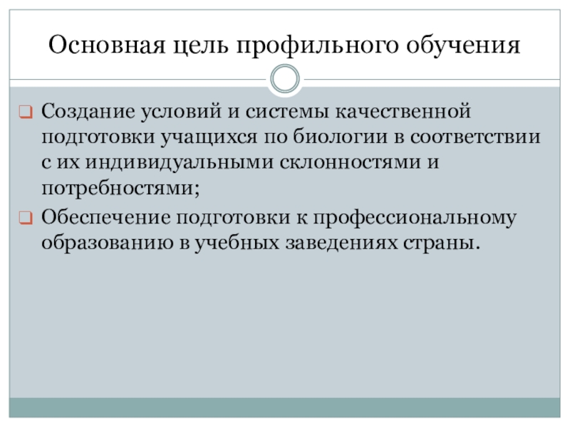 биологии в соответствии с их индивидуальными склонностями и потребностями;