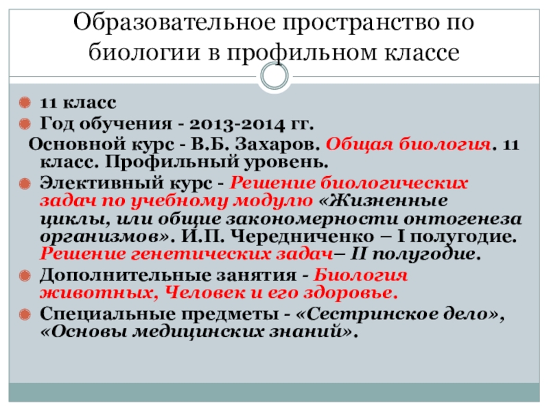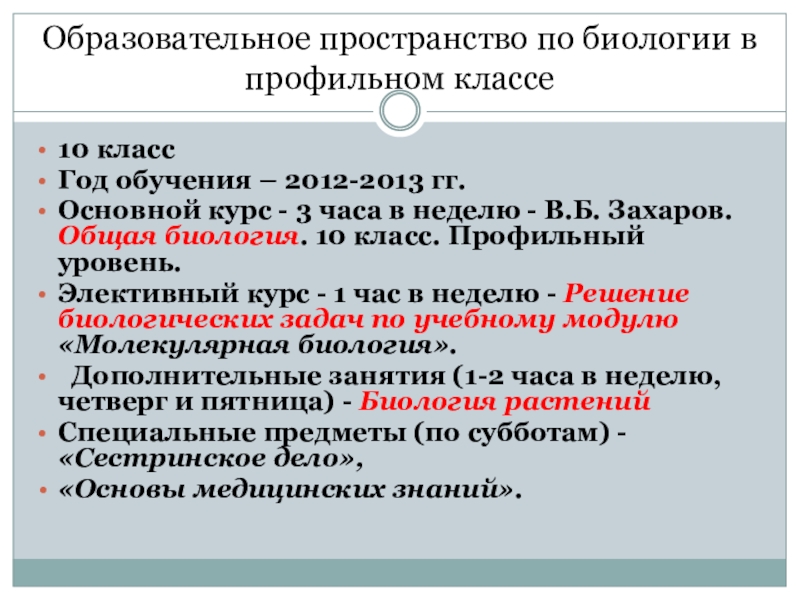 Слайд 6Образовательное пространство по биологии в профильном классе