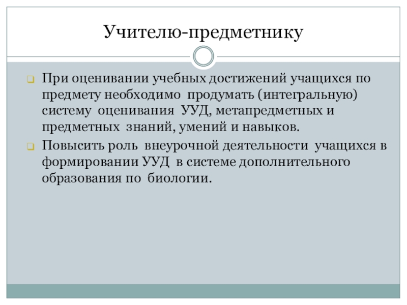 Повысить роль внеурочной деятельности учащихся в формировании УУД в системе дополнительного образования по биологии.