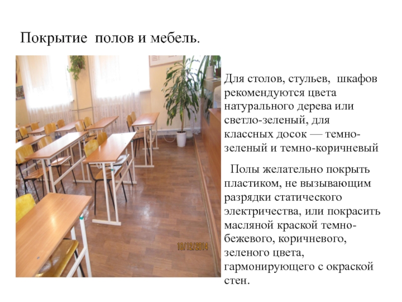 Слайд 9Покрытие полов и мебель.