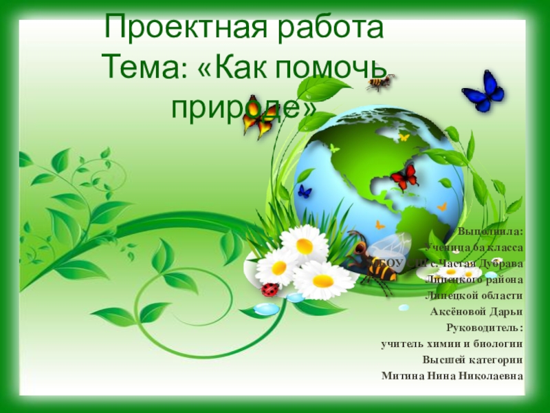 Предмет исследования – помощь, которую может оказать каждый человек для улучшения экологии Земли