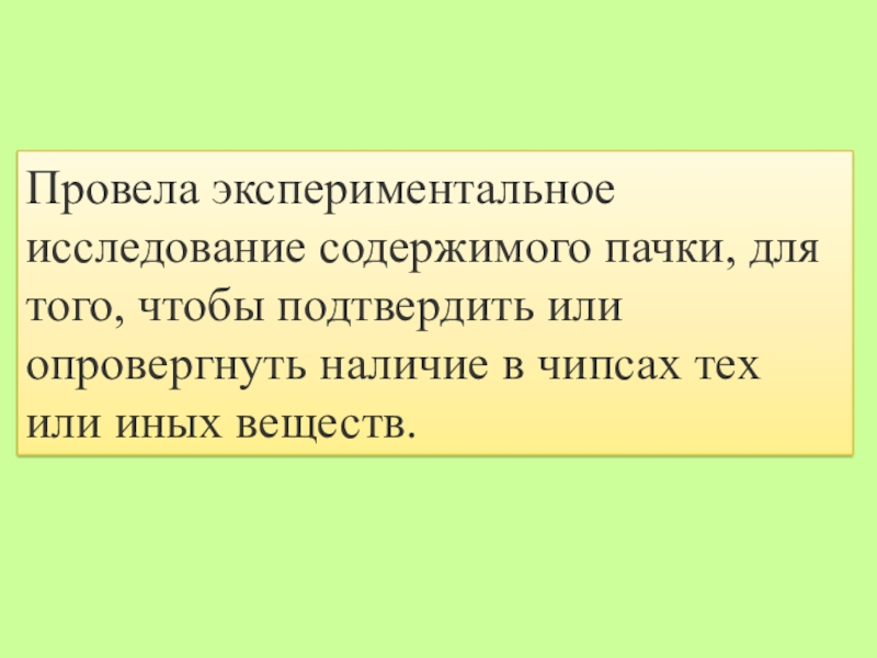 Слайд 17Провела экспериментальное исследование содержимого пачки, для того, чтобы подтвердить или опровергнуть