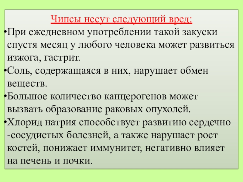 5. Сделать вывод: пользу или вред приносит употребление чипсов.