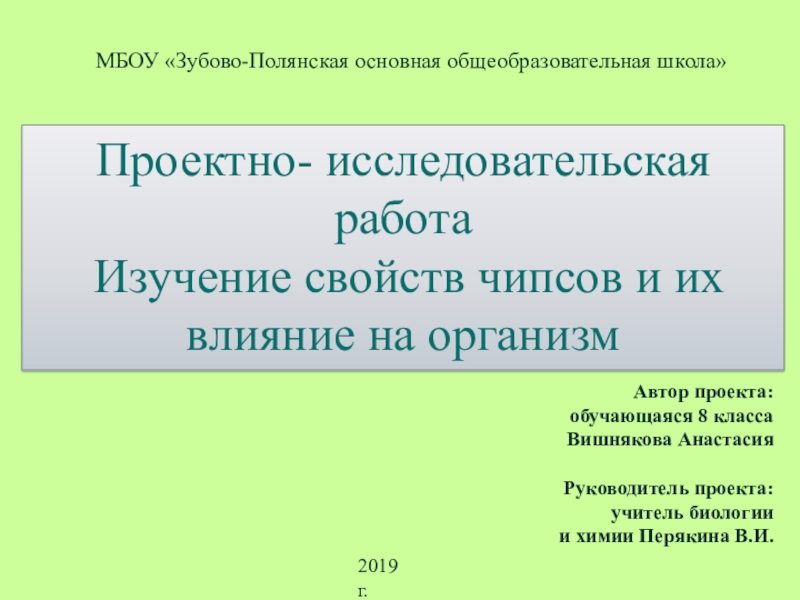 Автор проекта: обучающаяся 8 класса Вишнякова Анастасия