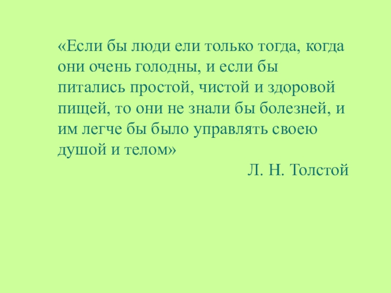 Слайд 2«Если бы люди ели только тогда, когда они очень голодны, и