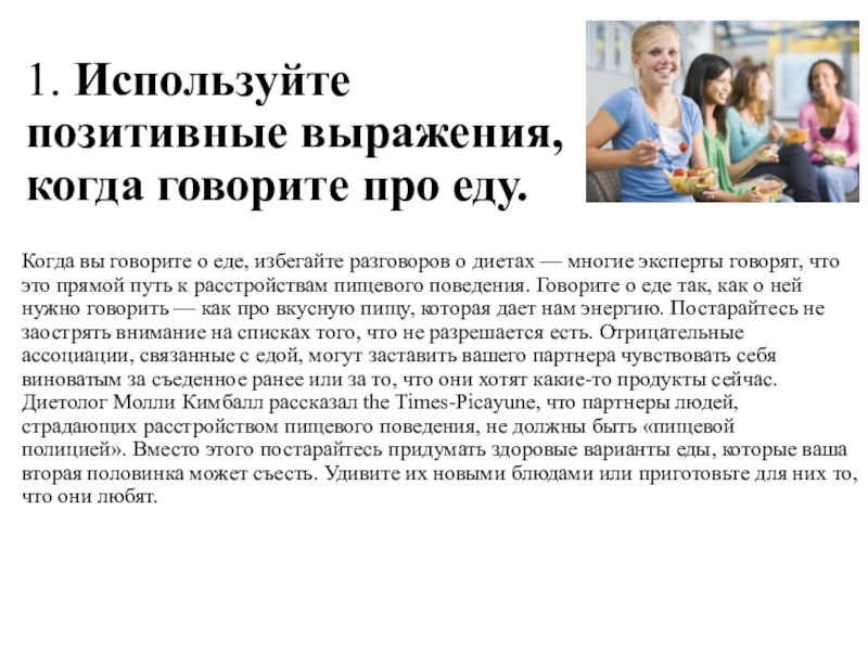 1. Используйте позитивные выражения, когда говорите про еду.