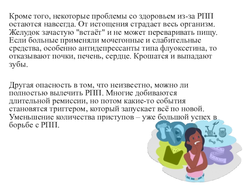 Слайд 7Кроме того, некоторые проблемы со здоровьем из-за РПП остаются навсегда. От