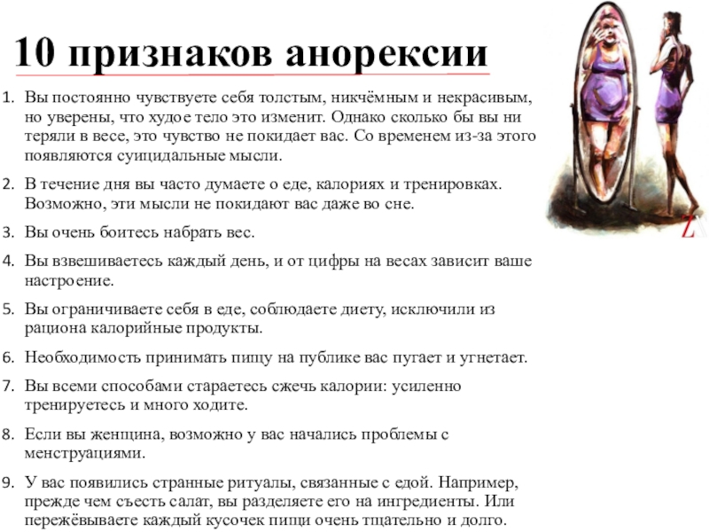 Слайд 1710 признаков анорексии