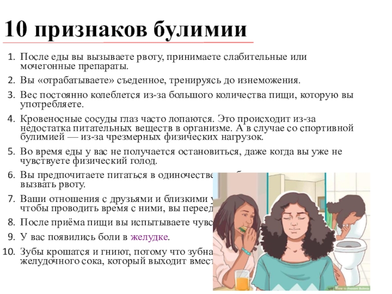 Слайд 1810 признаков булимии