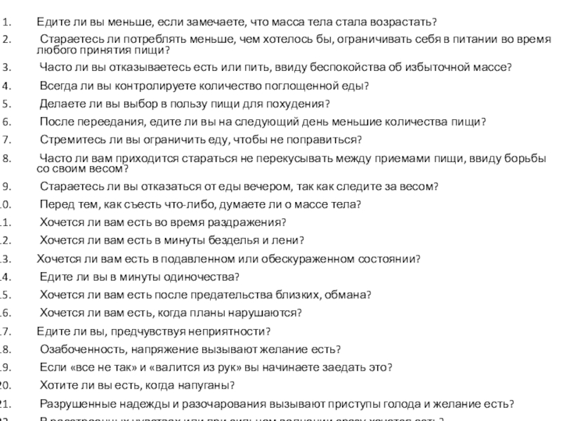 Слайд 25Экстернальное пищевое поведение (24-33 вопросы)