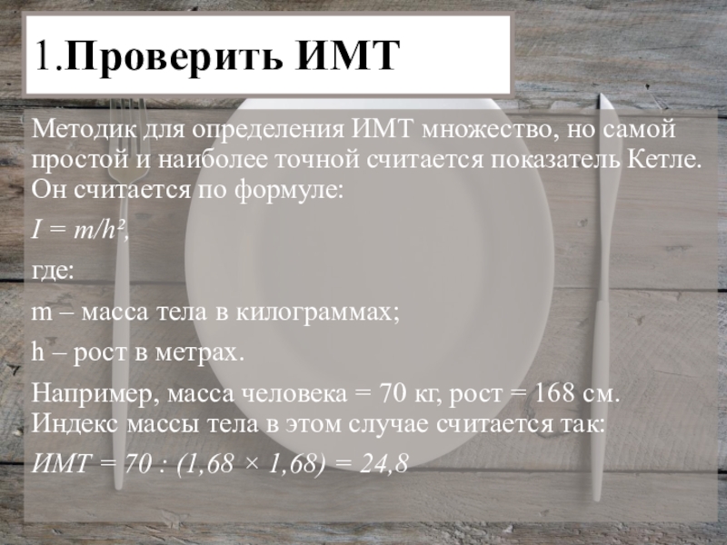 Слайд 151.Проверить ИМТ