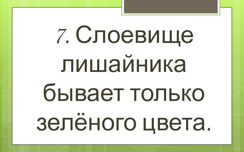 Слайд 87. Слоевище лишайника бывает только зелёного цвета.