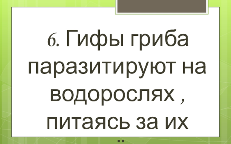 6. Гифы гриба паразитируют на водорослях , питаясь за их счёт.