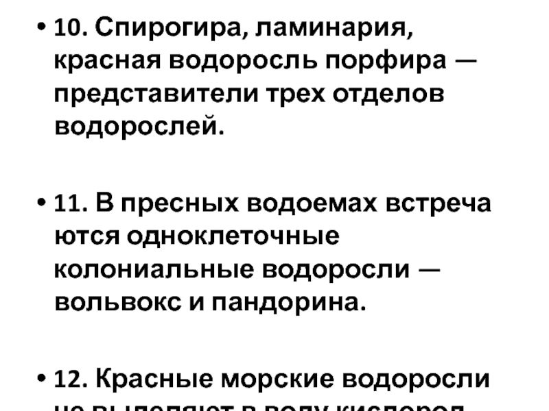 3. Водоросли живут не только в воде, но и на суше (на коре деревьев, на почве и в почве).