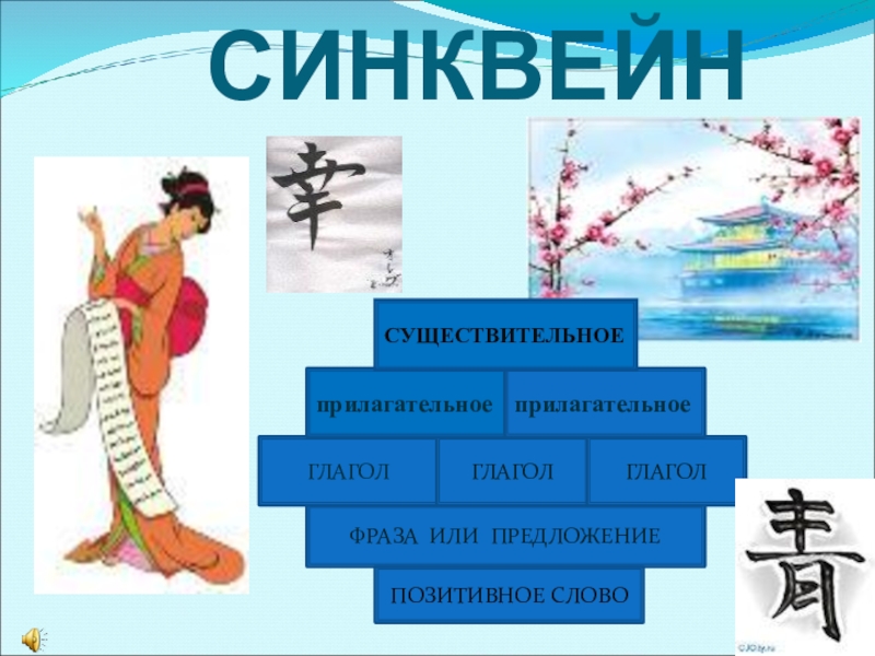 СИНКВЕЙНПОЗИТИВНОЕ СЛОВОФРАЗА ИЛИ ПРЕДЛОЖЕНИЕГЛАГОЛГЛАГОЛГЛАГОЛприлагательноеприлагательноеСУЩЕСТВИТЕЛЬНОЕ