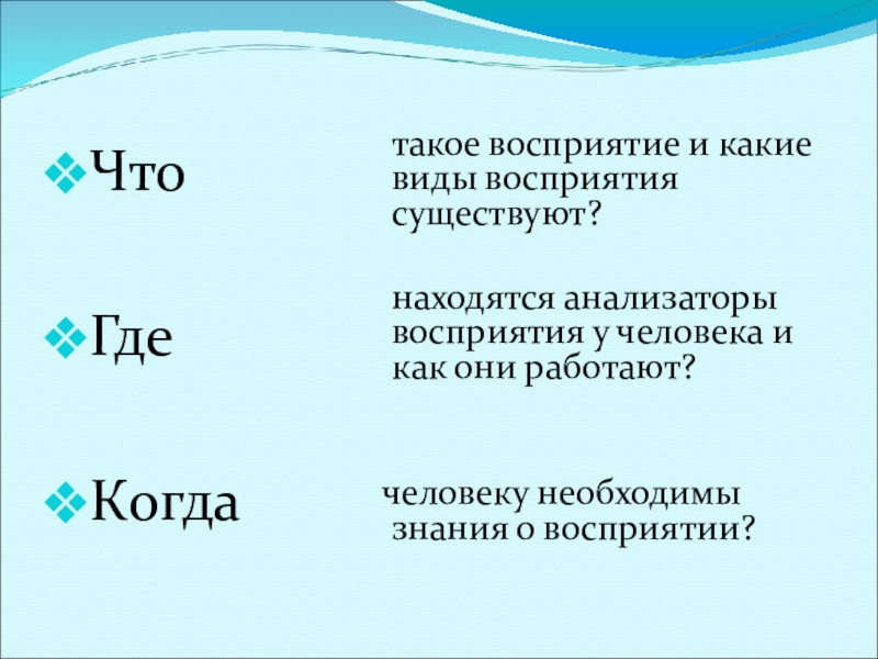 ЧтоГдеКогда такое восприятие и какие виды восприятия существуют? находятся анализаторы восприятия у человека и как они работают? человеку необходимы знания о восприятии?