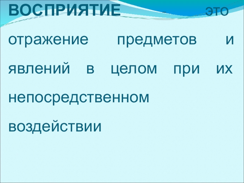 Слайд 3 ВОСПРИЯТИЕ - это отражение предметов и явлений в целом при их