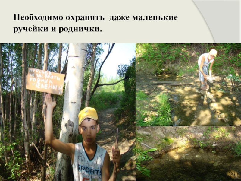 Слайд 10Необходимо охранять даже маленькие ручейки и роднички.